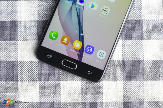 Phía dưới màn hình là nơi đặt 3 phím điều hướng với nút Home được Samsung tích hợp cảm biến vân tay. Và thật bất ngờ, cảm biến vân tay mà Samsung trang bị trên Galaxy J7 Prime là cảm biến vân tay một chạm, có nghĩa là bạn chỉ cần để tay lên phím home, máy sẽ tự mở khoá, không cần nhấn như những dòng máy trước đây của Samsung. Điều đó cũng có nghĩa, Samsung Galaxy J7 là thiết bị đầu tiên của Samsung được trang bị cảm biến vân tay một chạm, hứa hẹn sẽ mở đường cho những thiết bị kế tiếp của hãng trong tương lai.
