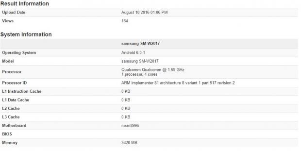 Các nguồn tin trước đó cho biết SM-W2017 sẽ sở hữu màn hình 3.9 inch tuy nhiên báo cáo mới từ phonearena.com chia sẻ rằng màn hình sẽ rộng 4.2 inch. Dự kiến smartphone này cũng được trang bị camera sắc nét với cảm biến mặt sau 12 MP tương tự như Galaxy Note 7 hiện nay.