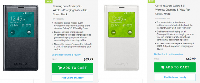 Nếu bạn không muốn một vỏ case với tính năng sạc không dây , bạn có thể sở hữu phụ kiện S – View FlipCase không có hỗ trợ Qi với giá mềm hơn là 49,99 USD với các màu đen, xanh lá cây , trắng và hồng .Tất cả các vỏ case sẽ có một miếng đệm giúp Samsung Galaxy S5 không bị thấm nước .