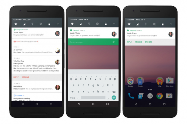 Thực chất đây là một tính năng không mới trên Android, khi mà Android Wear – phiên bản Android dành cho các thiết bị smartwatch - đã được trang bị. Theo đó, khi bạn đang lướt web, Facebook mà có tin nhắn mới, một cửa sổ pop-up nhỏ sẽ được hiện ra để thông báo nội dung, đồng thời cho phép bạn có thể gõ câu trả lời ngay trên đó, sau đó có thể quay trở lại lướt web, Facebook mà không cần phải mở ứng dụng ra để trả lời. Rõ ràng đây một sự cải tiến nhỏ nhưng giúp người dùng có thể sử dụng thoải mái, tiện lợi hơn.