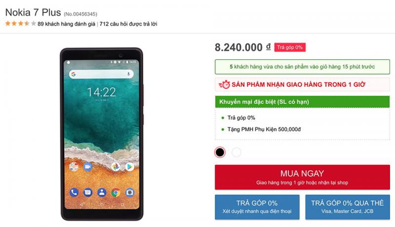 Nói thêm về cấu hình, máy được trang bị 4GB RAM, 64GB bộ nhớ trong, màn hình 6 inch 1080 x 2160 pixels. Camera trước có độ phân giải 16MP, camera kép phía sau 12MP + 13MP cùng dung lượng pin lớn 3.800 mAh. Cùng với yếu tố thương hiệu cũng như thiết kế trạng trọng bắt mắt nên Nokia 7 Plus nhận được rất nhiều sự quan tâm của người dùng.