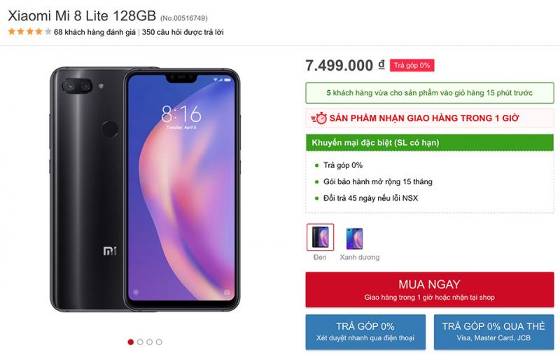 Mi 8 Lite còn gây ấn tượng với camera chất lượng, trong đó camera trước có độ phân giải tới 24MP sử dụng cảm biến Sony IMX576, kết hợp cùng AI cho những bức ảnh selfie đẹp tự nhiên. Mặt sau là camera kép 12MP + 5MP, trong đó cảm biến chính 12MP có kích thước điểm ảnh lớn 1.4µm mang đến khả năng chụp thiếu sáng tốt.