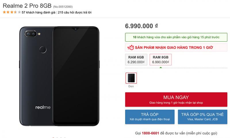 Là một thương hiệu mới nhưng Realme đã tìm được một chỗ đứng nhất định trên thị trường smartphone với những mẫu điện thoại cấu hình cao, thiết kế đẹp và mức giá hết sức hấp dẫn. Realme 2 Pro cũng nằm trong số đó, sản phẩm được trang bị con chip Snapdragon 660 với hai phiên bản bộ nhớ 6GB/64GB và 8GB/128GB với mức giá lần lượt là 6,29 và 6,99 triệu đồng. Mức giá quá hấp dẫn so với cấu hình của máy.