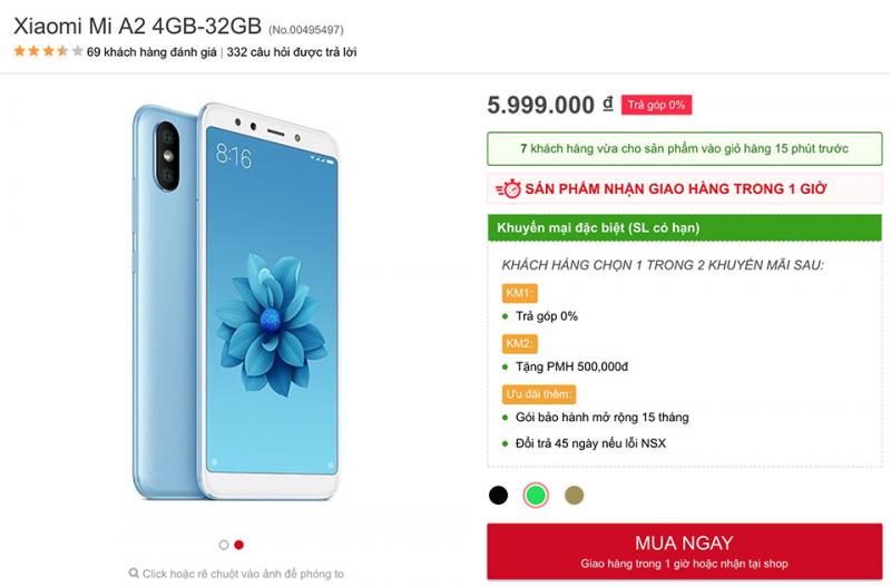 Với mức giá 6 triệu đồng, Xiaomi Mi A2 là sản phẩm chạy Snapdragon 660 có mức giá hấp dẫn nhất. Bên cạnh đó máy cũng chạy Android One cho trải nghiệm mượt mà. Một điểm hấp dẫn khác nằm ở camera của máy. Cụ thể cụm camera kép phía sau Xiaomi Mi A2 bao gồm cảm biến chính Sony IMX486 12MP điểm ảnh 1,25um, khẩu độ f/1,75 và cảm biến phụ Sony IMX376 20MP công nghệ ghép điểm ảnh 2,0um 4 trong 1, f/1.75. Khẩu độ và điểm ảnh lớn giúp cho Xiaomi Mi A2 chụp ảnh tốt trong cả điều kiện thiếu sáng.