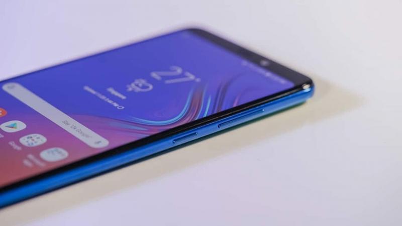 Các nút nguồn và âm lượng nằm ở bên phải, tuy nhiên, chúng khá nhỏ nếu so sánh với kích thước tổng thể khá lớn của Galaxy A9 2018.