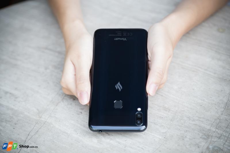 Nổi bật ở giữa mặt sau là logo của Vsmart, bên dưới là chữ Vsmart kèm thông tin sản xuất tại Việt Nam.