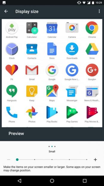 Đây là tính năng dành cho những ai sở hữu điện thoại màn hình lớn nhưng lại cảm thấy bất tiện khi sử dụng. Display Size cho phép thu nhỏ giao diện người dùng để có thể nhìn thấy nhiều chi tiết trên màn hình hơn. Trong khi đó, tính năng tương tự trên iOS không có khả năng thu nhỏ màn hình.