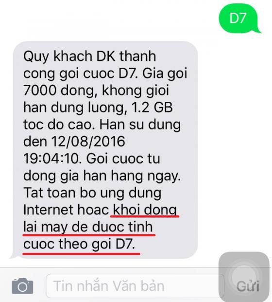 Thông thường khi bạn đăng ký gói cước 3G, tin nhắn nhà mạng trả lại luôn yêu cầu bạn khởi động lại thiết bị để áp dụng gói cước mới.