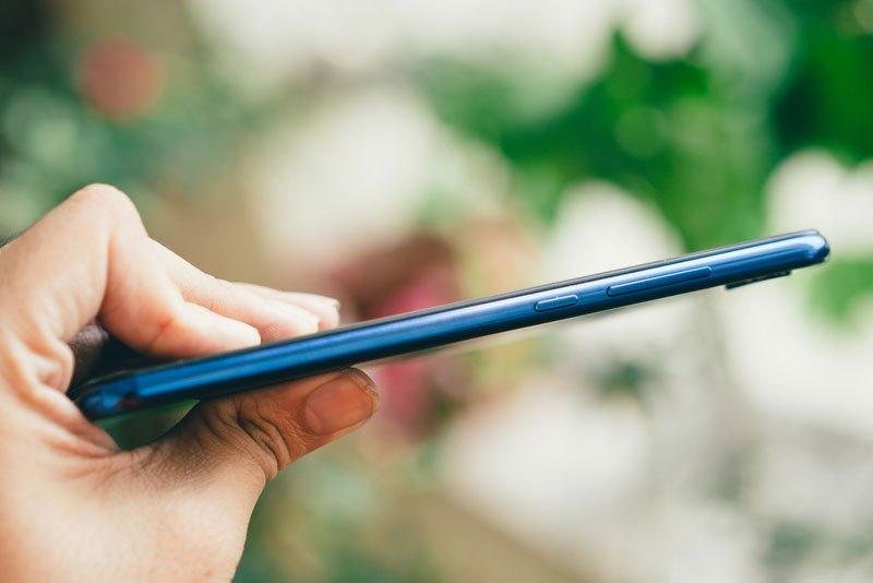 Thân máy thon gọn với độ dày chỉ 7,5 mm cùng phần viền màn hình mỏng tối ưu các số đo đồng hành các góc, cạnh bo tròn và mặt kính cong 2.5D giúp việc cầm nắm dễ chịu.