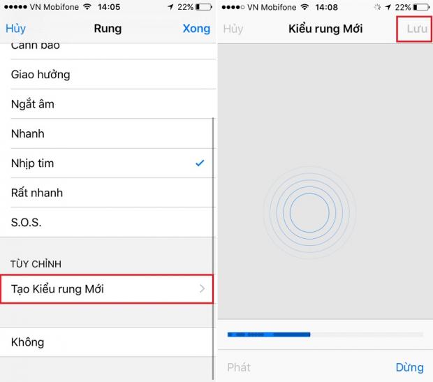 Ngoài ra, các bạn có thể sáng tạo thêm những kiểu rung mới bằng cách bấm vào Tạo kiểu rung mới và làm theo hướng dẫn.