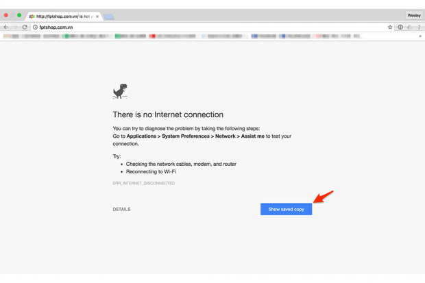 Đồng thời trang web cũng hiển thị nút Show Saved Copy, bạn hãy nhấn vào nút này để mở lại trang web. Có thể thấy rằng, tính năng này giúp bạn có thể xem các trang web ở trạng thái không có kết nối, cực kì hữu ích khi bạn cần đọc báo, xem thông tin,… ở những nơi không có mạng.