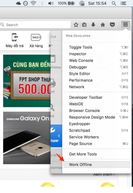 Thay vì tùy chỉnh sâu bên trong trình duyệt Google Chrome, bạn chỉ cần vài thao tác cực kỳ đơn giản để bật tính năng này trên trình duyệt Firefox. Bạn chỉ cần truy cập vào trang web bạn muốn lưu, mở tùy chọn của trình duyệt, chọn Developer, tiếp theo chọn Work Offline để lưu trang web và xem lại nội dung mà bạn đã mở ngay cả khi không có kết nối Internet.