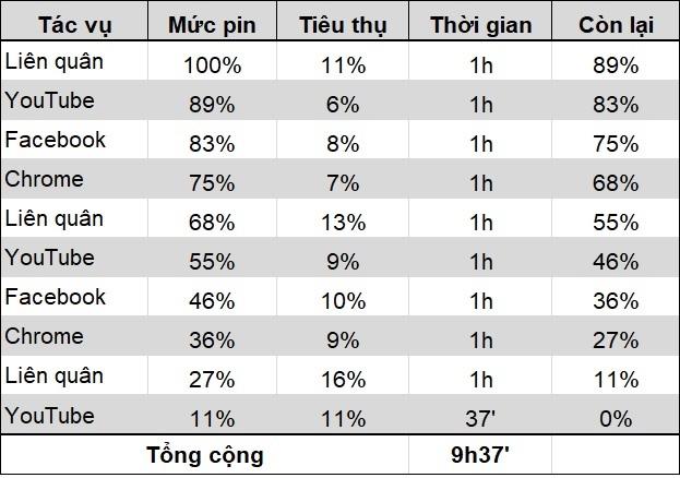 Tổng thời gian sử dụng pin tiêu chuẩn trên Vsmart Joy 4