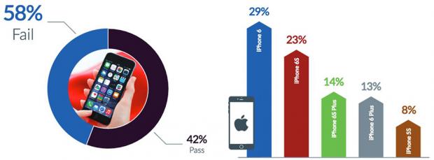 Blanco cũng cho biết rằng công ty phát hiện ra iPhone 6 có tỉ lệ gặp sự cố cao nhất lên tới 29% tiếp sau là iPhone 6s (23%), iPhone 6s Plus (14%), iPhone 6 Plus (13%) và iPhone 5s (8%). Trong số các điện thoại Android, điện thoại Samsung gặp nhiều sự cố nhất với 26%. Ứng dụng bị treo chiếm tỉ lệ sự cố cao nhất trên iPhone (65%) trong của Android lại là máy ảnh (10%) và các vấn đề về pin (10%).