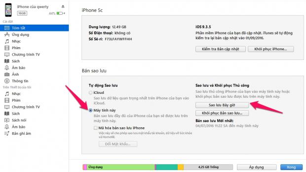 - Nhấp vào Backup Now.