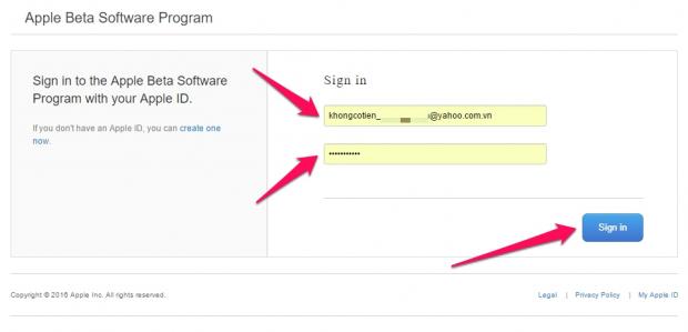 Tiếp theo, đăng ký chương trình iOS 10 Beta