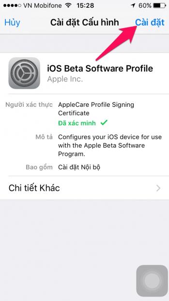 Cuối cùng, cài đặt iOS 10 Beta