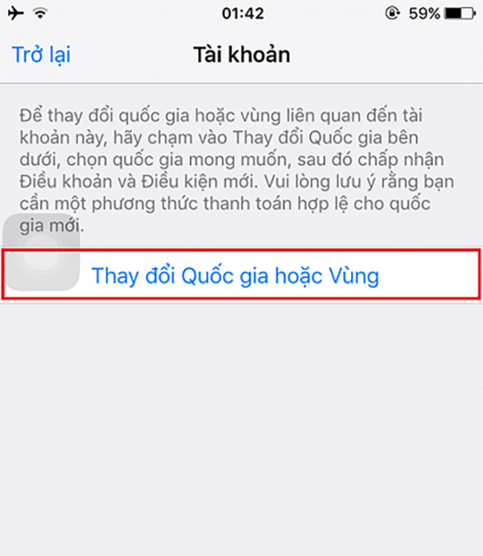 Bấm vào “Thay đổi quốc gia hoặc vùng” để xác nhận