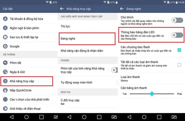 Để bật tính năng này, bạn vào Cài đặt > Khả năng truy cập > Đang nghe. Tại đậy, bạn tích vào phần Thông báo bằng đèn LED.