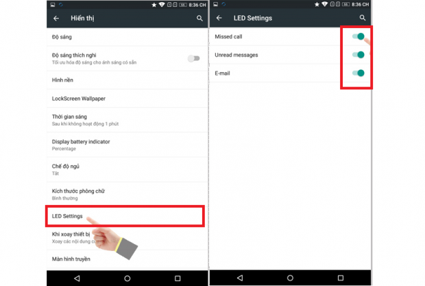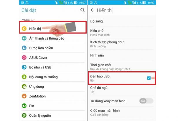 Trên các thiết bị của hãng này, bạn chỉ cần vào Cài đặt > Hiển thị và tích vào mục Đèn báo LED để bật tính năng này lên.
