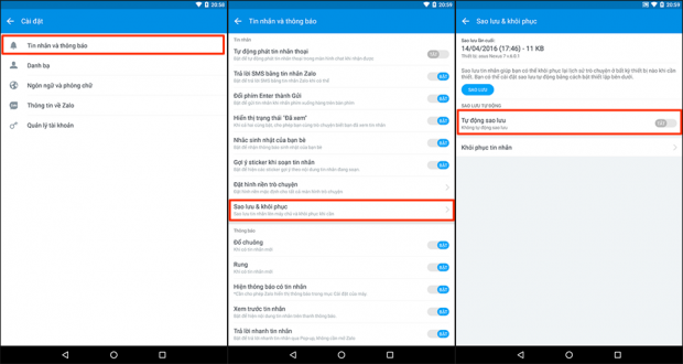 Trước đây, vì một lí do nào đó khiến người dùng phải chuyển đổi và đăng nhập tài khoản Zalo trên thiết bị khác, sẽ có rất nhiều tin nhắn quan trọng, hình ảnh, ghi âm sẽ bị mất đi. Do đó, tính năng sao lưu và khôi phục tin nhắn mới trên Zalo giúp người dùng có thể lưu trữ cũng như khôi phục lại tin nhắn cho dù có đổi thiết bị, giúp mọi thông tin và dữ liệu của người dùng luôn được giữ lại. Để bật tính năng này, bạn hãy truy cập vào trang cuối cùng trên giao diện Zalo, chọn Thiết lập, vào Tin nhắn và thông báo, chọn Sao lưu & khôi phục và bật Tự động sao lưu lên để kích hoạt tính năng. Hiện tại, tính năng này thì có sẽ trên Zalo phiên bản dành cho hệ điều hành Android.