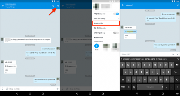 Trong quá trình sử dụng, tin nhắn cũng như các cuộc hội thoại của người dùng sẽ bị trôi đi, thay vào đó là các tin nhắn mới, cuộc hội thoại mới. Do đó, mỗi khi cần tìm lại các đoạn nội dung từng nhắn, bạn sẽ mất rất nhiều thời gian. Hãy thử tưởng tượng rằng bạn nói chuyện với bạn bè của mình về cuộc hẹn, sau một thời gian bạn quên mất rằng khi nào sẽ gặp nhau, bạn sẽ phải dò đi dò lại tin nhắn đề tìm lại thời gian hẹn, như vậy rất mất thời gian. Vậy nên tính năng tìm lại tin nhắn trong Zalo là điều rất hay. Để sử dụng, bạn chỉ cần vào tin nhắn của một người nào đó, nhấn vào Menu, chọn Tìm tin nhắn và nhập nội dung cần tìm.
