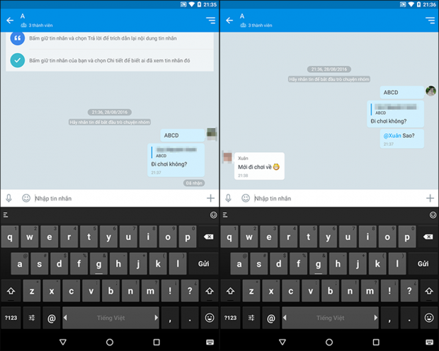 + Bấm giữ tin nhắn và chọn Trả lời để trích dẫn lại nội dung tin nhắn: Với tính năng này, bạn có thể trích dẫn lại đoạn tin nhắn (bằng cách nhấn và giữ vào tin nhắn đó) đã được đăng trước đó ở trong nhóm.