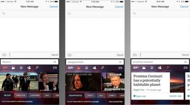 Giống như bàn phím mặc định của iPhone, Word Flow cũng được trang bị tính năng đoán từ để giúp người dùng nhập liệu nhanh hơn. Tuy nhiên, Word Flow thú vị hơn bàn phím của iPhone ở chỗ, khi bạn vuốt thanh tiên đoán sang bên trái, một thanh tìm kiếm sẽ hiện ra cho phép bạn tìm kiếm hình ảnh, ảnh GIF và các biểu tượng cảm xúc trên web. Đối với ảnh GIF và hình ảnh thông thường, bạn có thể copy kết quả vào clipboard và dán vào một cuộc trò chuyện văn bản.
