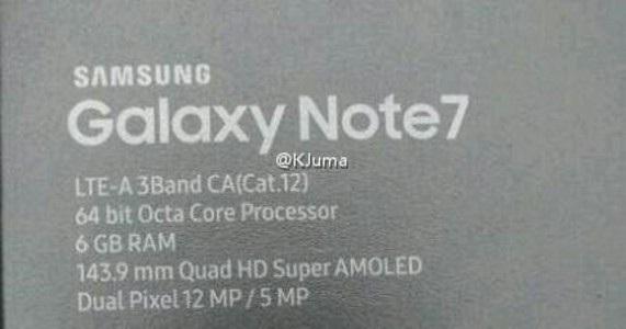 Cụ thể, trên mạng xã hội Weibo Trung Quốc đã xuất hiện một bức ảnh được cho là ảnh chụp vỏ hộp Galaxy Note 7, cho thấy một số thông tin về biến thể mới với dung lượng RAM 6GB, màn hình Super AMOLED độ phân giải Quad HD, chip xử lý 64 bit và bộ đôi camera 12MP/5MP sử dụng công nghệ Dual Pixel. Bên cạnh đó, tài khoản đăng tải hình ảnh này (@KJuma) cũng tiết lộ rằng model này dự kiến có giá khoảng 1048 USD (khoảng 23 triệu đồng).