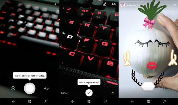 Với tính năng Stories, bạn có thể vuốt sang trái để bắt đầu tạo ra 1 câu chuyện mới: nơi bạn có thể chụp ảnh hay quay video, sau đó phác họa chúng bằng những công cụ vẽ hay những bộ lộc để tạo điểm nhấn cho câu chuyện. Bạn cũng có thể lưu chúng xuống thư viện ảnh rồi chia sẻ sau nếu không có mạng.