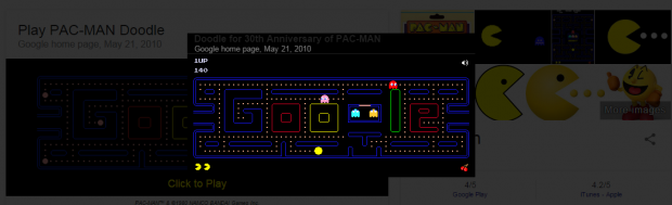 Cũng như 2 game Caro và Solitaire, chỉ cần vào thanh tìm kiếm của Google, tìm với từ khóa “Pacman” màn hình chơi game sẽ xuất hiện trước mặt bạn.