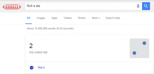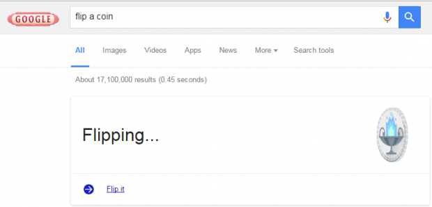 Google có cách đấy, cứ vào thanh tìm kiếm, tìm với từ khóa: “Flip a coin” nếu muốn thử vận may bằng đồng xu. Hoặc tìm “Roll a die” nếu bạn muốn thả xúc xắc.
