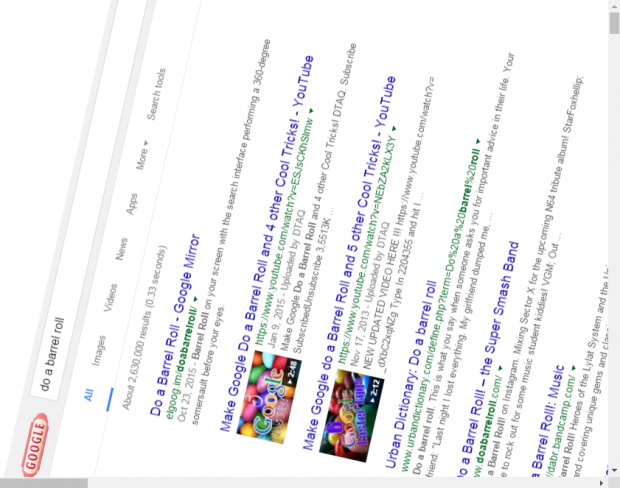 Nếu muốn ghẹo bạn bè mình thì có cách này hay lắm. Mượn máy tính của họ vào ngay Google và nhập từ khóa: “askew” hay “do a barrel roll”, chắc chắn nếu không biết chuyện gì, người đó sẽ phải một phen hú hồn.