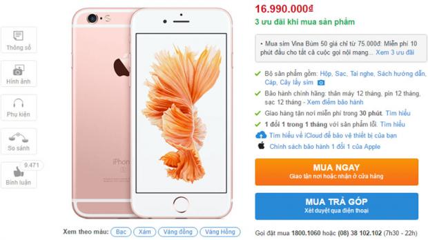 Cho đến nay khi ra mắt được gần 1 năm, iPhone 6s 16 GB chính hãng đang được giảm giá còn tầm 17 triệu đồng, tức cao hơn khoảng 3 triệu đồng. Một mức giá tốt và hợp lý hơn nhiều.