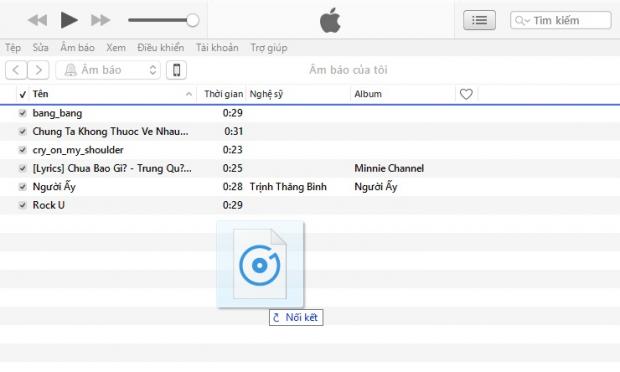 Bước 2: Kéo bản nhạc chuông vừa tải về và bỏ vào mục Âm báo trong iTunes là được.