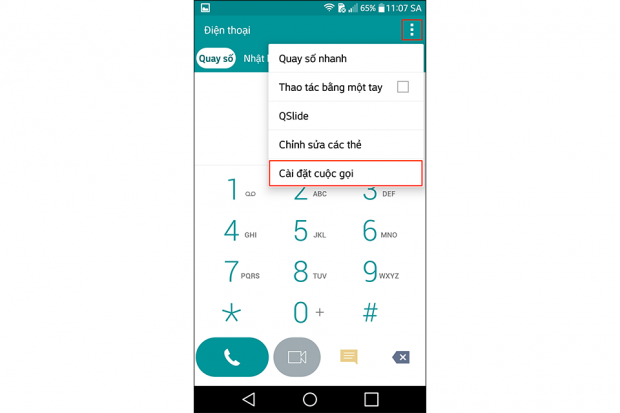 Tiếp theo, bạn nhấn vào giao diện Menu ở góc trên bên phải và chọn “Cài đặt cuộc gọi”.