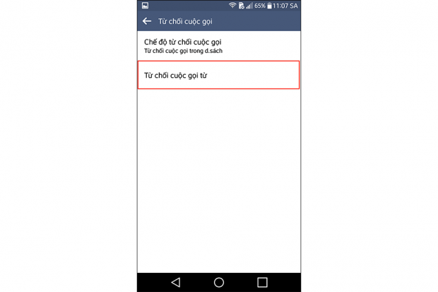 Trong giao diện này, các bạn chọn “Từ chối cuộc gọi từ” để chọn cụ thể từng số điện thoại. Ngoài ra, bạn cũng có thể chọn “Chế độ từ chối cuộc gọi” để chặn tất cả các số điện thoại.
