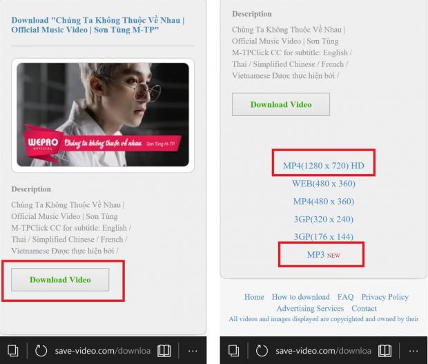 Bước 3: Một trang web mới hiện ra > Nhấn vào 'Download Video' > Chọn định dạng cần tải về (Chọn MP4 nếu muốn xem video chất lượng cao/ MP3 nếu chỉ muốn nghe nhạc).