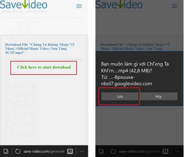 Bước 4: Nhấn vào 'Click here to start download' > Nhấn 'Lưu' để bắt đầu quá trình tải Video về.
