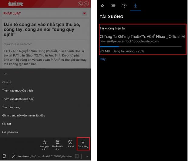 Bạn có thể xem tiến độ tải Video về bằng cách vào More (Biểu tượng 3 Gạch) > Tải xuống. Ngoài ra, bạn vẫn có thể làm việc khác mà video vẫn được tải về bằng cách thu nhỏ trình duyệt xuống (nhấn phím Home).