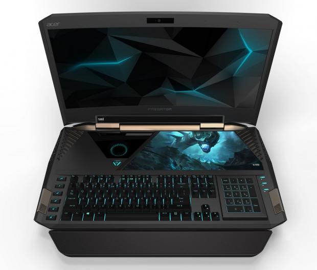 Không từ nào có thể diễn tả độ “khủng” của chiếc laptop chơi game mà Acer mang đến triển lãm công nghệ IFA lần này. Với trọng lượng lên tới 8kg, Acer Predator 21X được trang bị màn hình cong kích thước 21 inch với bộ cấu hình khủng với CPU Intel Core i7 Kaby Lake, 2 GPU GeForce GTX 1080, RAM tối đa 64GB, ổ cứng bao la HDD hoặc SSD tùy ý thích, loa 4.1 + 1 loa siêu trầm. Chưa hết, máy còn được tích hợp cảm biến theo dõi cử động mắt do Tobii sản xuất để bạn có thể di chuyển vùng nhìn trong game bằng chính mắt mình.