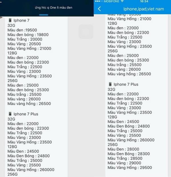 Theo đó, trên trang Facebook của một cá nhân làm trong lĩnh vực buôn bán điện thoại có 2 hình ảnh về giá bán của iPhone 7, 7 Plus tại Việt Nam đã xuất hiện.
