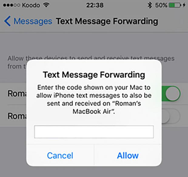 Sau đó quay lại ứng dụng Messages trên máy Mac, bạn sẽ thấy xuất hiện mã xác nhận gồm 6 chữ số. Bạn hãy nhập mã số đó vào khung xác nhận trên iPhone và bấm Allow (Cho phép) là đã hoàn tất.
