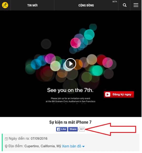 Bước 3: Share (chia sẻ) trang tổng hợp sự kiện ra mắt iPhone thế hệ mới: (https://www.thegioididong.com/tin-tuc/su-kien/su-kien-ra-mat-iphone-7-14) về trang Facebook cá nhân chế độ Công khai (public).
