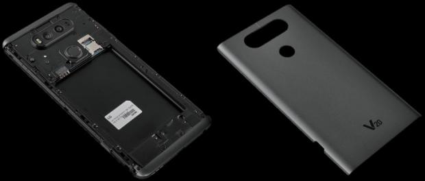 LG V20 có thiết kế khá giống với LG G5 nhưng nó không dùng thiết kế mô đun mà thay vào đó là nắp lưng có thể tháo rời để thay thế pin hoặc lắp SIM, thẻ nhớ. Màn hình của V20 là giống như V10, màn hình chính 5.7 inch 2K trong khi màn hình phụ là 2.1 inch nhưng LG đã tăng độ sáng của màn hình lên.