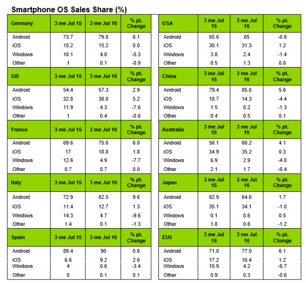 Kantar vừa qua đã có báo cáo nghiên cứu mới nhất về thị phần ngành công nghiệp điện thoại thông minh trong quý thứ hai của năm 2018. Theo số liệu, iOS đã tăng gần 6% trong thị phần nhờ vào sức nóng mạnh mẽ của iPhone 8 và iPhone X. Tại Hoa Kỳ, thị
