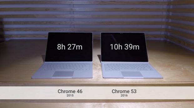 Trong tuyên bố trên, Google đưa ra bằng chứng là một đoạn video về quá trình test pin trên 2 phiên bản trình duyệt của hãng là Chrome 46 và Chrome 53. Kết quả cho thấy với phiên bản 53 người dùng sẽ tiết kiệm 2 giờ 12 phút dùng pin so với phiên bản 46. Mời các bạn theo dõi video bên dưới: