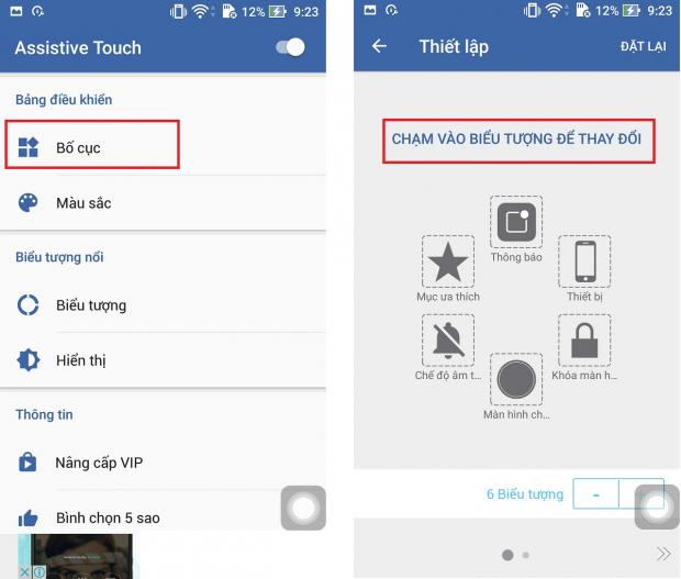 Ngoài ra, bạn có thể tùy chỉnh như thêm vào, sửa xóa các chứng năng trên phím Home ảo bằng cách mở ứng dụng đó lên > Trong mục Bảng điều khiển chọn Bố cục > Chọn vào chức năng cần thay đổi > Thay thế nó.