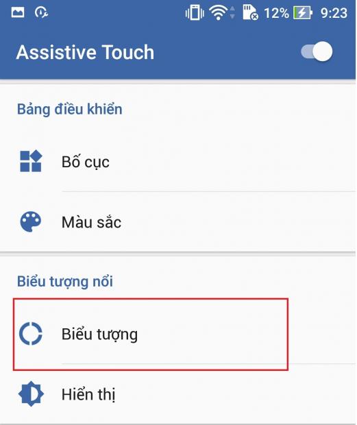 Bạn còn có thể thao đổi màu sắc, biểu tượng, kích thước của phím Home ảo này trong mục Biểu tượng nổi nữa đấy!