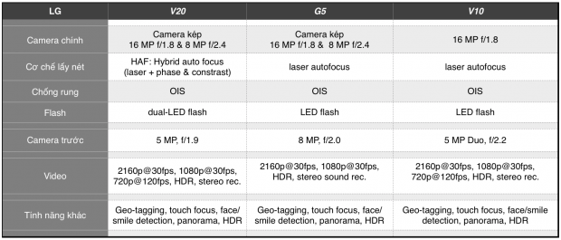 Camera của LG V20: Có 3 camera, 2 ống kính góc rộng, lấy nét theo pha cả chụp hình lẫn quay video